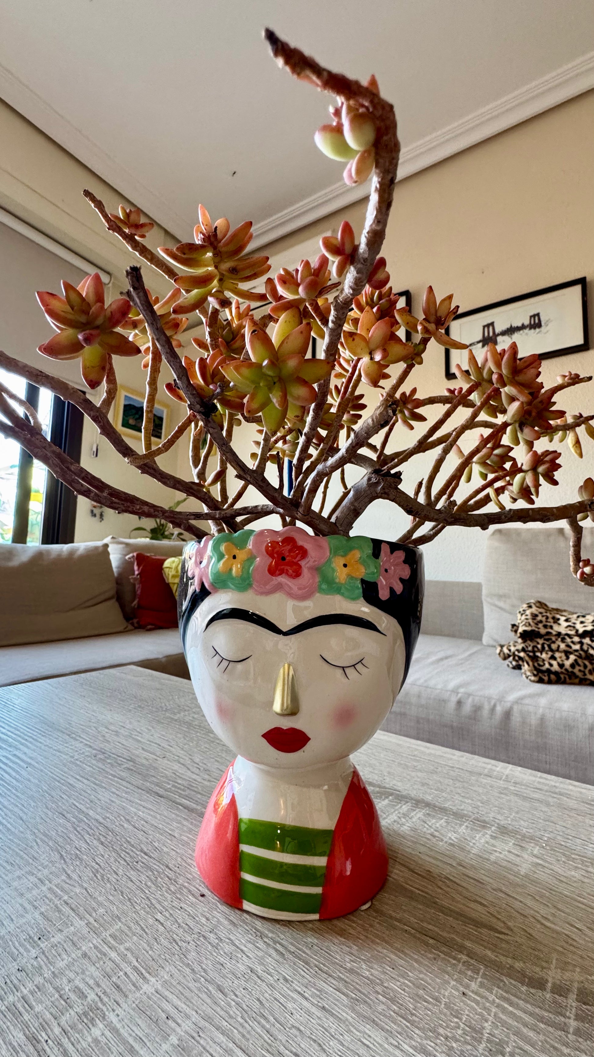 Maceta de cerámica multicolores, en forma de mujer Frida Khalo, diámetro de
