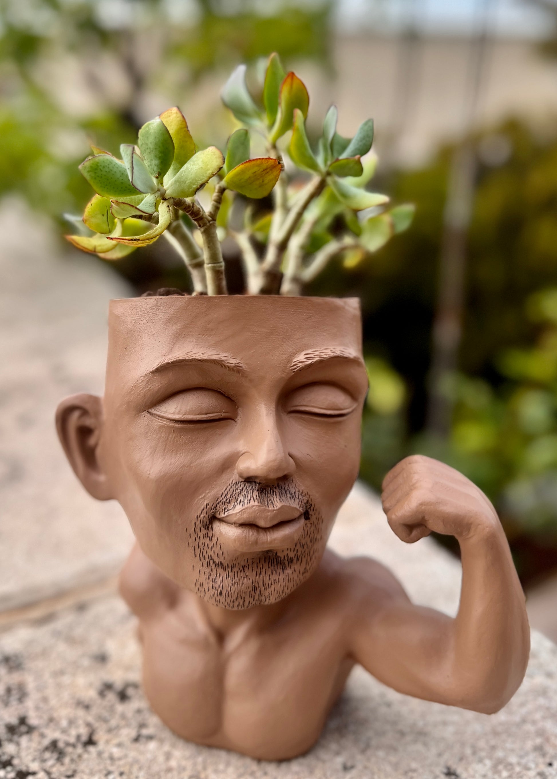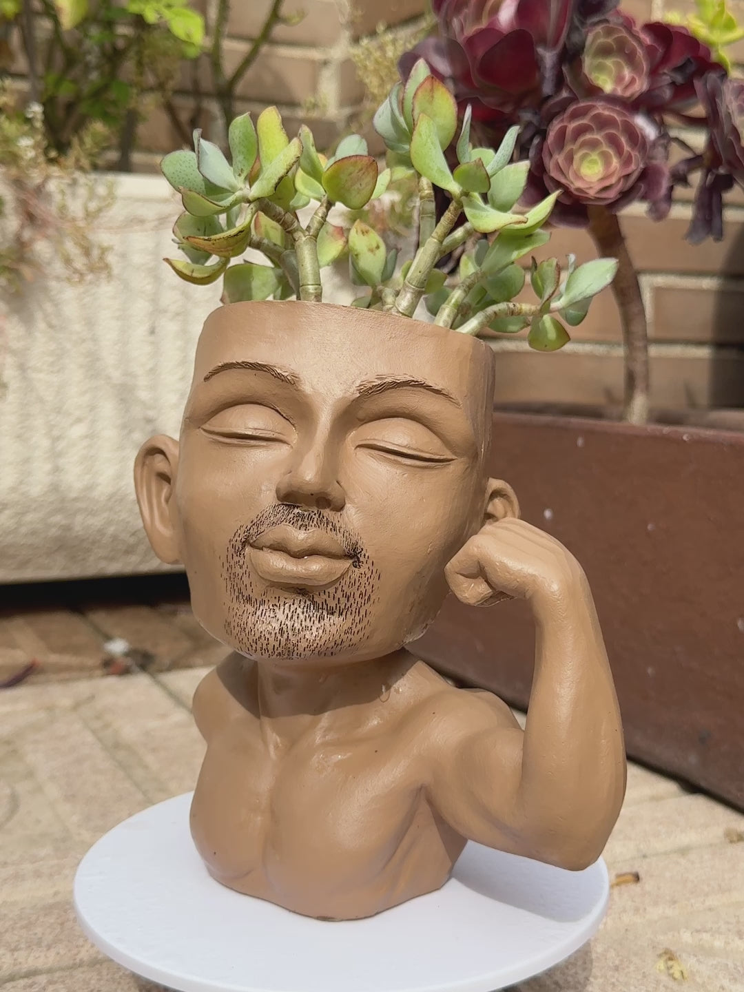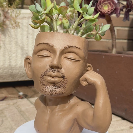 Maceta estilo hombre musculoso, viene con agujero de drenaje.